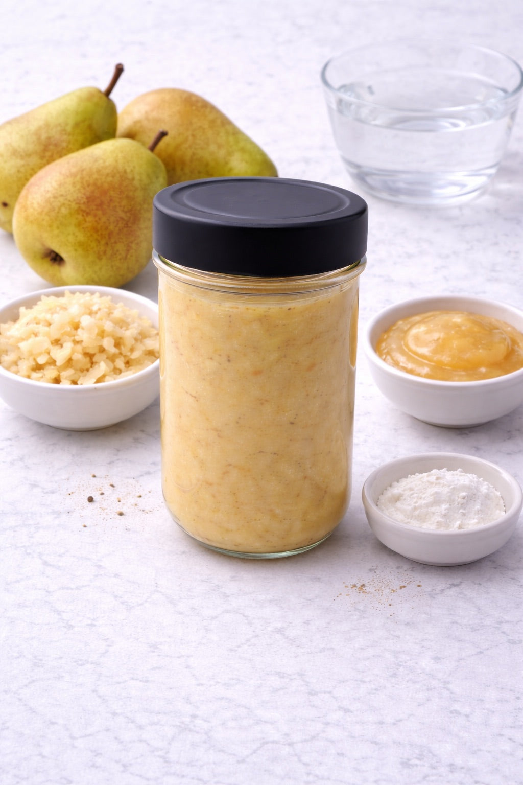 Diese Birnencreme wird aus reifen Birnen hergestellt und fein püriert.