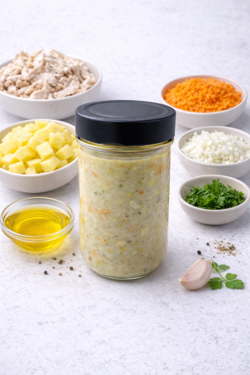 Hähnchen-Cremesuppe mit Kartoffeln, Karotten und ReisSuppe